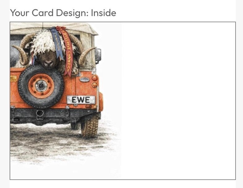 The Farm Lasses Greetings Card. Land Rover & Valais Blacknose Ewe.