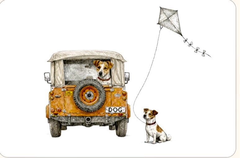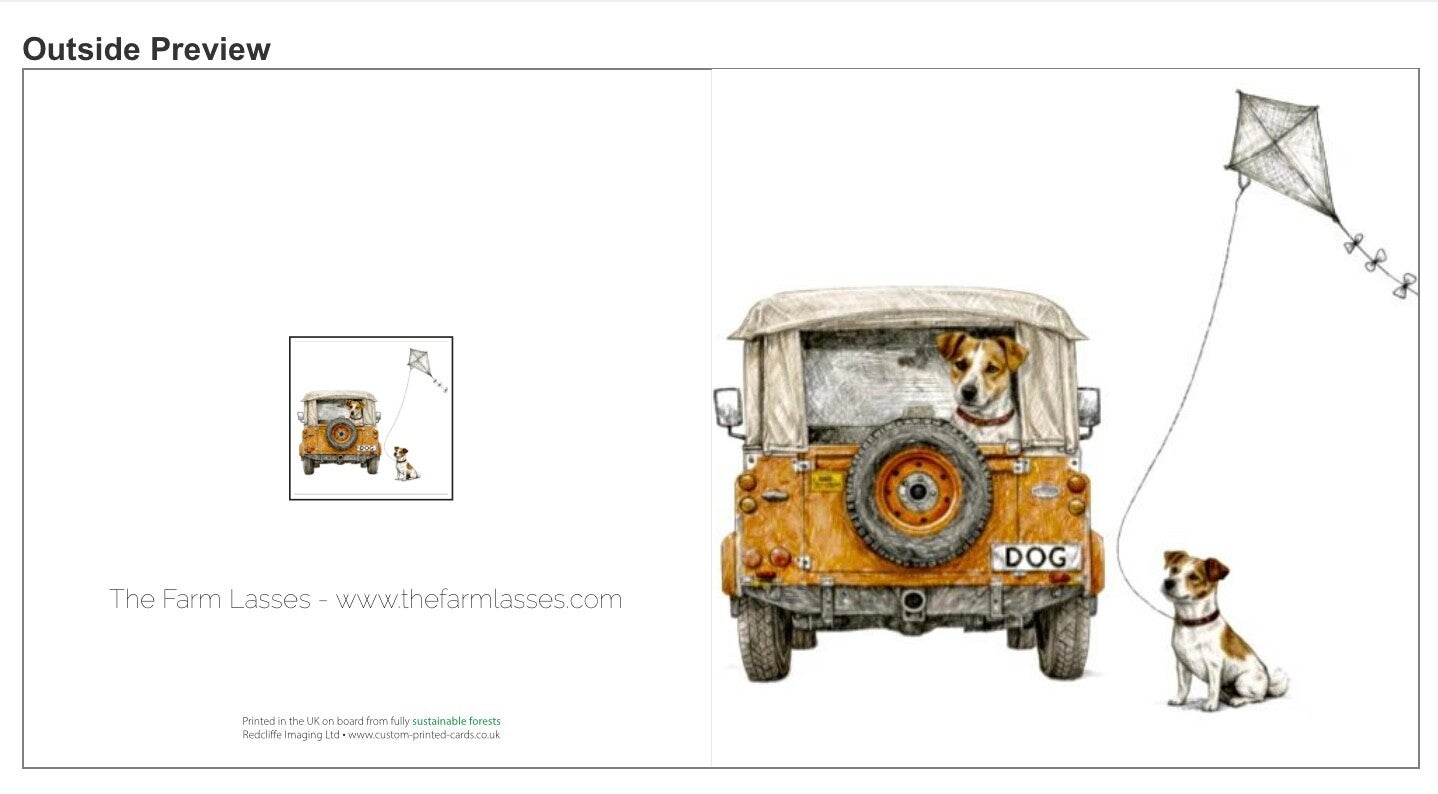The Farm Lasses Jack Russell Land Rover greetings card.