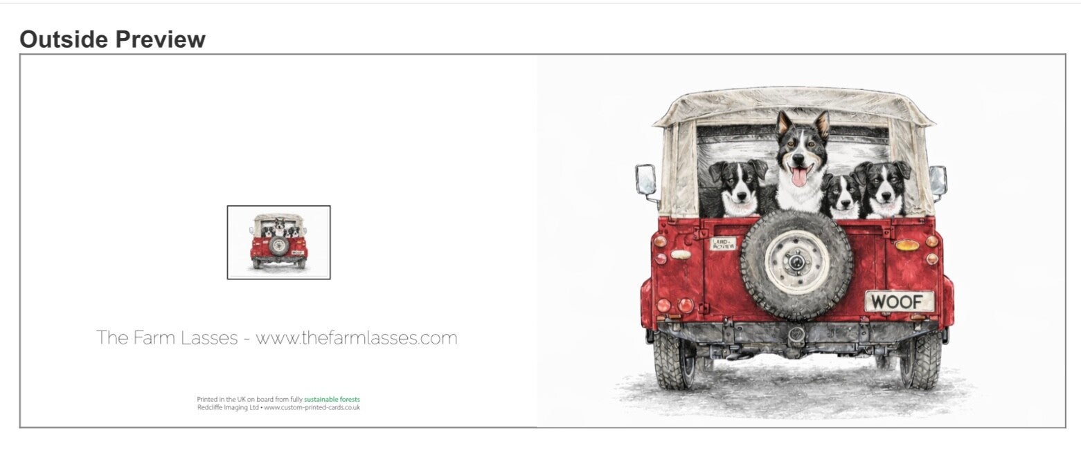 The Farm Lasses - Land Rover Border Collie Greetings card for all occasions.