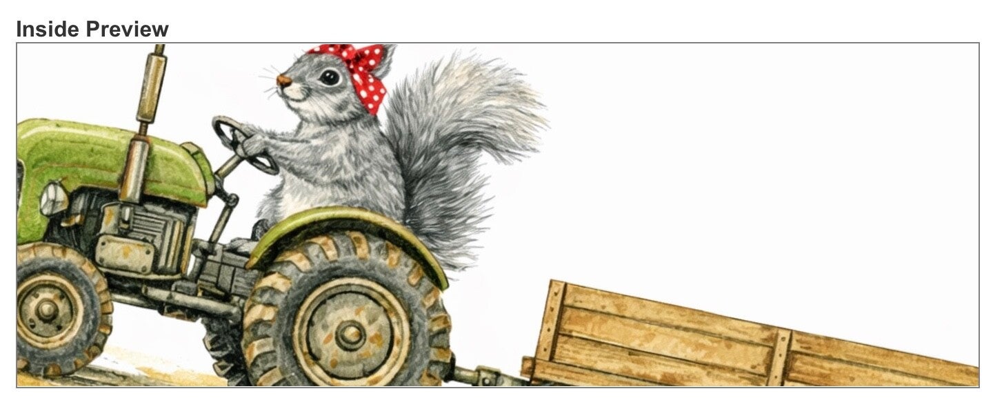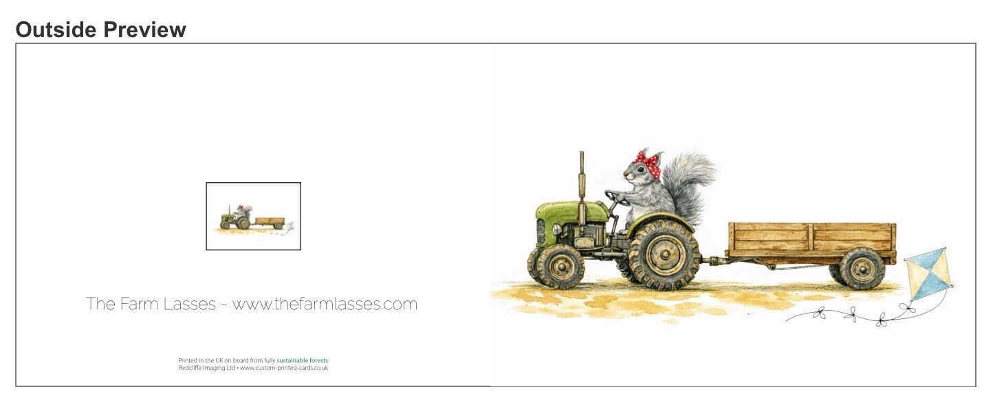 The Farm Lasses Tractor, Squirrel, humour Greetings card.