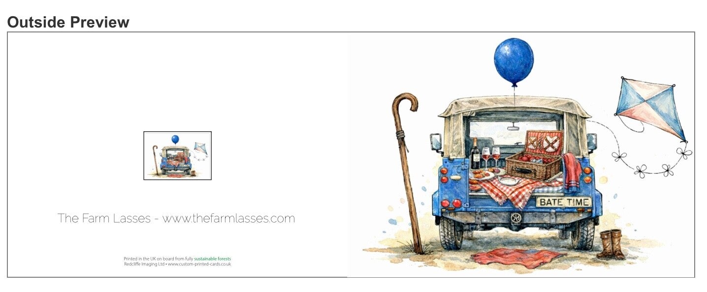 The Farm Lasses - Picnic in a Land Rover all occasions greetings card.