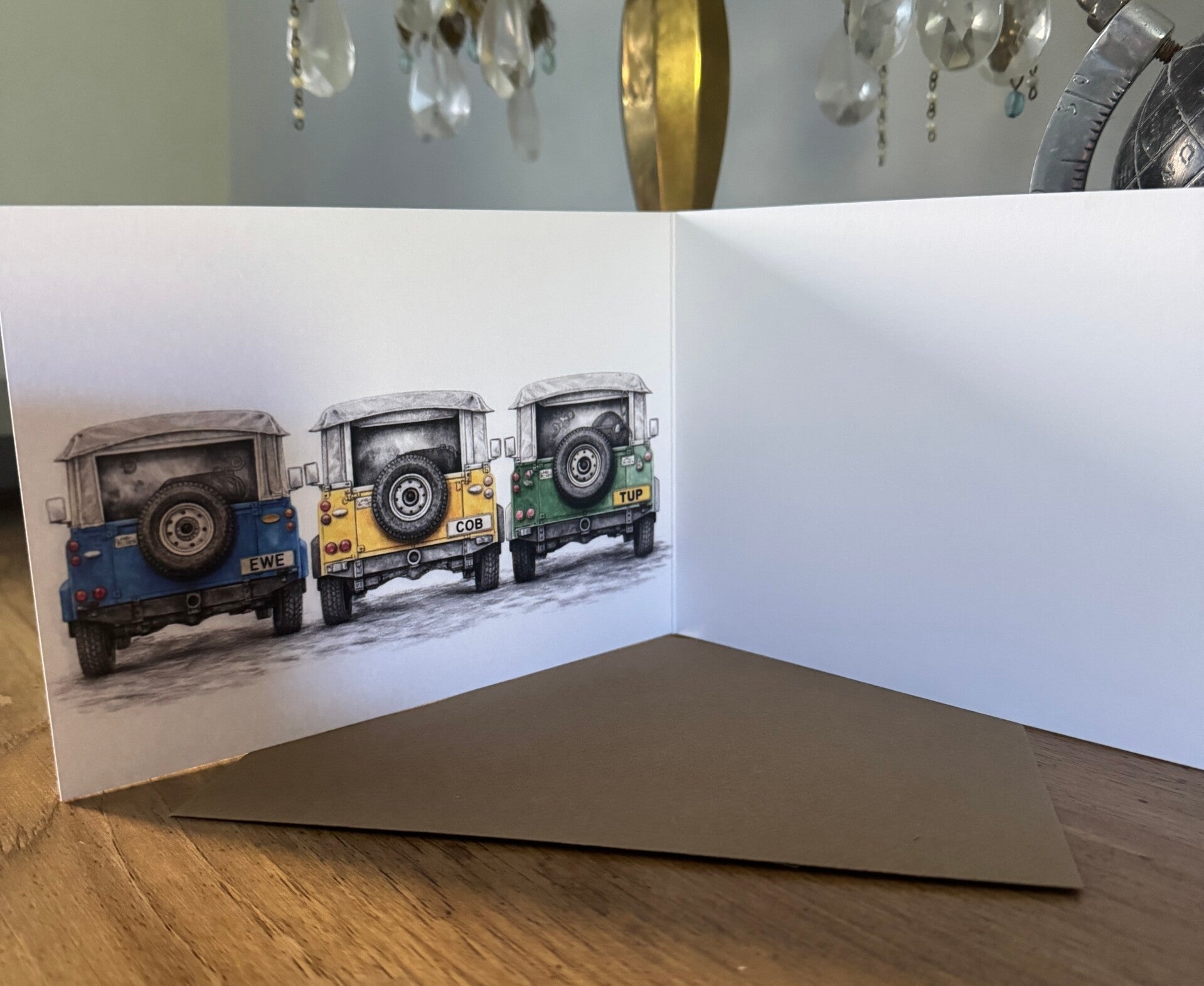 Land Rover Greetings card with EWE, COB number plates.